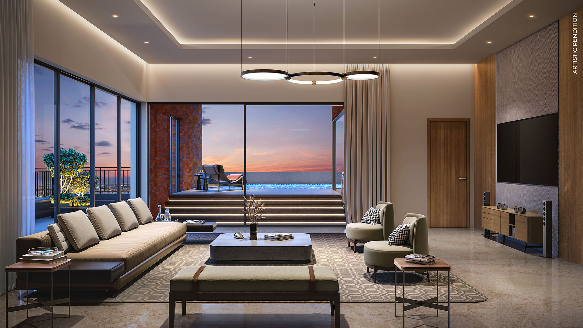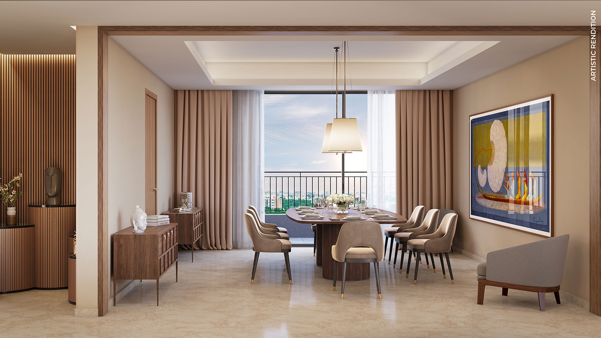 This is not an offer, an invitation to offer and/or commitment of any nature. The images include artistic impressions and stock images. The details of Project, Apartment/ Unit including but not limited to designs, dimensions, cost, facilities, plans, images, specifications, furniture, accessories, paintings, items, electronic goods, additional fittings/fixtures, decorative items, false ceiling including finishing materials, specifications, shades, sizes and colour of the tiles and other details shown in the images are only indicative in nature and are only for the purpose of illustrating/indicating a possible layout and may not form part of the standard specifications/amenities/services to be provided in the Project, Apartment/ Unit. Intending buyers are advised to use their discretion in relying on the information/amenities described/shown therein. All specifications of the Project, Apartment/ Unit shall be as per the documents/information uploaded by the company on the website of UPRERA and the agreement between the parties.
