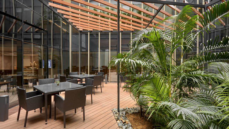 At Max Estates, our inspiration comes from humans’ affinity with nature. Assimilating nature as an active participant in the workplace allows for periods of relaxation and escape from the hustle of the workday. The ~11,000 sq. ft. “Central Forest Courtyard” at Max Square extends this core idea of work-life balance by allowing occupiers to interact with nature even as they work indoors, lowering stress and increasing employee satisfaction.