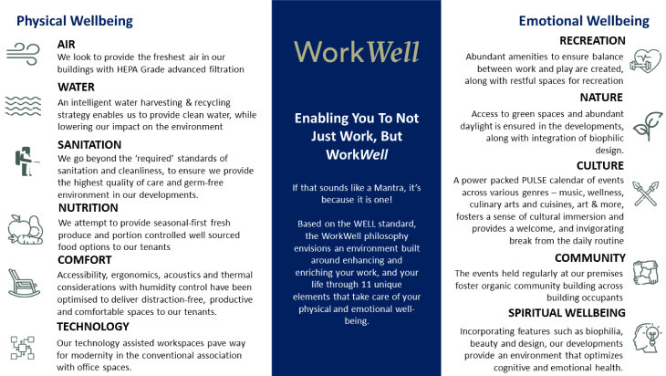 The elements of WorkWell include air, water, nature, and recreation, among others, and we ensured that attention is paid to this right from the inception, during the design process.
